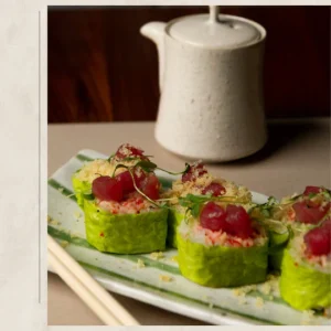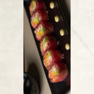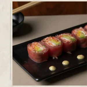 RICELESS ROLL Tuna, Mango, Avocado, Kani Salad, Cream Cheese, Wasabi Aioli, Ponzu