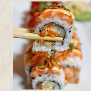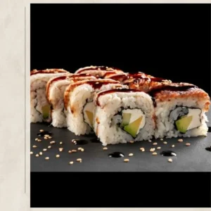 Eel, Avocado, Cucumber, Tempura Flakes, Spy paper, Spicy Mayo & Eel Sauce